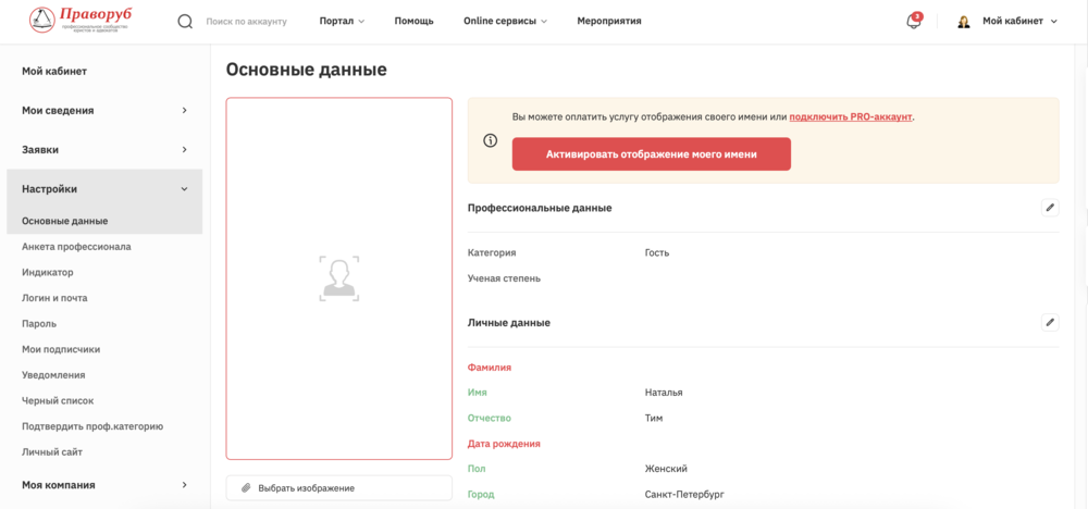 Прикладываю скриншот, из которого видно, что мои ФИО будут открыты только после подтверждения профессиональной категории (тариф PRO также).