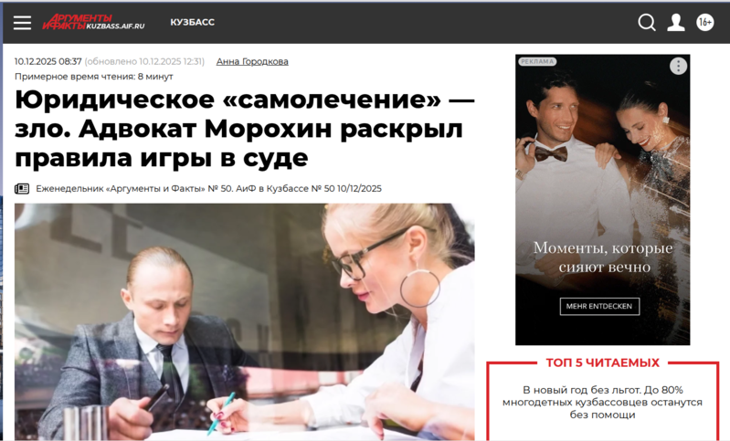 Уважаемый Иван Николаевич, Как коллега-адвокат скажу так: интервью получилось очень “земное” и полезное без пафоса и без сказок про «мы сейчас напишем жалобу, и всё решится» в наше время это очень важно!